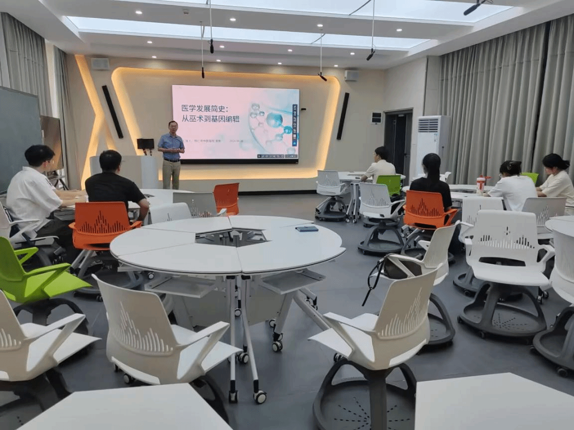 为了开拓我院研究生的学术视野,提高研究水平和创新能力,2025年6月6日,铜仁市中医医院李陈主任医师在学科楼A514教室为2024级材料与化工(精细化工方向)研究生做了题为《医学发展简史—从巫术到基因编辑》的专题讲座。