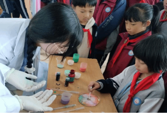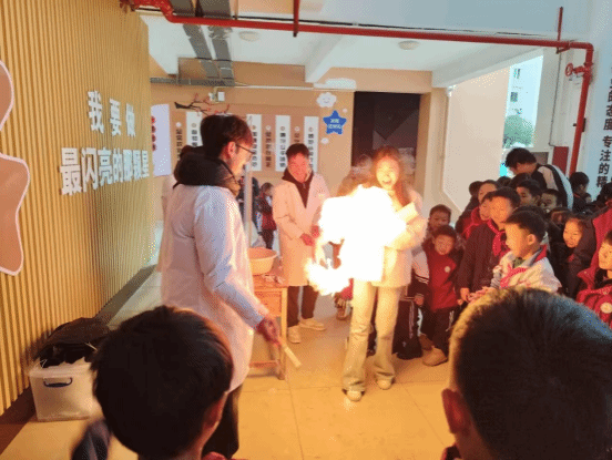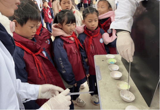 11 月 20 日上午,2023级化学工程与工艺班的同学们前往beat365中国唯一官网附属小学,为小朋友们演示趣味化学实验。“牛奶彩虹”“掌上火焰”、“魔法药水”、“焰色反应”、“水中火焰”、“激光爆气球”、“熔岩灯”、“神奇的紫甘蓝”、“魔法变色水”等一系列神奇实验轮番上演,奇妙现象令观摩学生们惊叹,极大激发了他们对学习科学实验的热情。