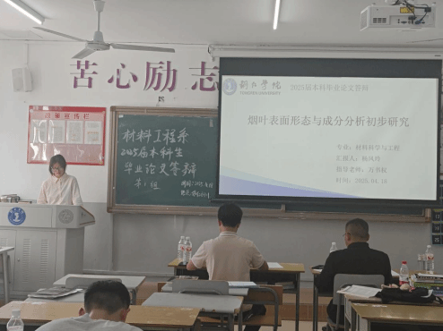 2025年4月18日,材料工程系在依仁楼B三楼组织开展了2025届本科毕业生毕业论文答辩工作。本次答辩旨在全面检验学生的学术研究能力与实践成果,共有四个答辩小组同步进行,由本专业教师团队担任评审,对论文质量及答辩表现进行综合考核。