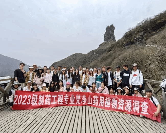 2025年4月13至16日,我院2023级制药工程专业学生在杨传东、鲁道旺等六位专家带领下,深入梵净山国家级自然保护区开展为期四天的药用植物野外见习。此次实践采用“辨识-采集-制标”三位一体教学模式,围绕野外资源调查、特色植物鉴别、标本制作三大核心任务展开教学。