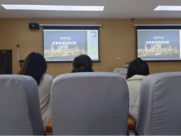 3月12日,华峰集团在博思楼105教室对我院2025届全体毕业生开展招聘宣讲。本次招聘会由华峰集团江苏启东新项目负责人潘彬宣讲,我院学生科向媛老师组织。