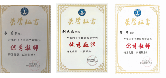 2024年9月,本专业朱苗、刘庆庆和谢玮老师在第四十个教师节被评为“优秀教师”。