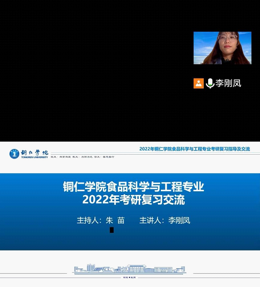 为进一步加强同学们对食品科学专业考研形势的认识、增强同学们的考研斗志。10月24日晚21点,材料与化学工程学院在读博士李刚凤教授在腾讯会议对beat365中国唯一官网食品科学与工程专业正在考研复习的同学们进行了一次考研复习交流会议。李老师就考研科目分值比例、各科目复习策略及考研复习心态三方面问题展开交流给处于冲刺阶段的同学们带来了一粒“定心丸”。此次参会人员包括2018、2019、2020届食品科学与工程专业学生。