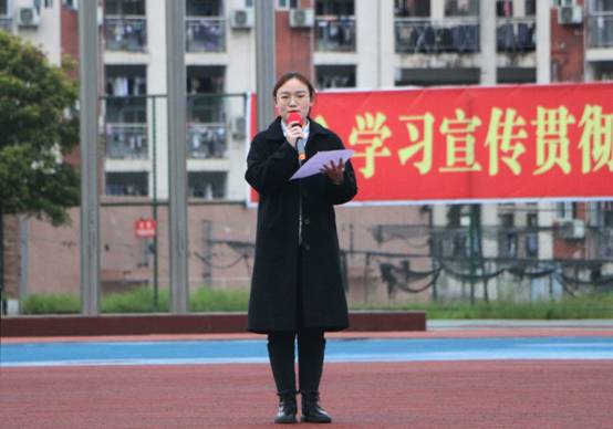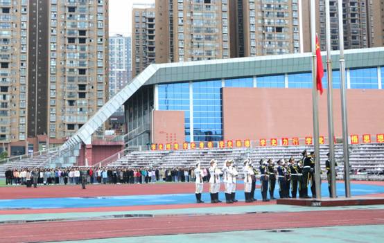 升旗仪式正式开始,英姿飒爽的国旗护卫队迈着矫健的步伐,走向升旗台。伴随着旋律激昂的《义勇军进行曲》,国旗在风中飘扬,卷出一团红彤彤的火焰。全体学生敬望着国旗冉冉升起;伴着清脆响亮的歌声“起来,不愿……”在场每一同学无不深怀对祖国无限的热爱和崇高的敬意。随后,学生代表覃雷在国旗下发表了振奋人心的讲话。