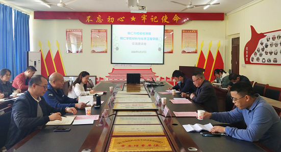 4月27日上午,材料与化学工程学院与铜仁市检验检测院召开交流座谈会议。参会人员有铜仁市检验检测院院长王毅、副院长陈历刚、舒娟,材料与化学工程学院党委书记唐帮成、副院长冷森林、食品药品工程系主任罗海荣,以及检测院相关部门专家、材化院相关专业教师。会议在材化院会议室召开,由院党委书记唐帮成主持。