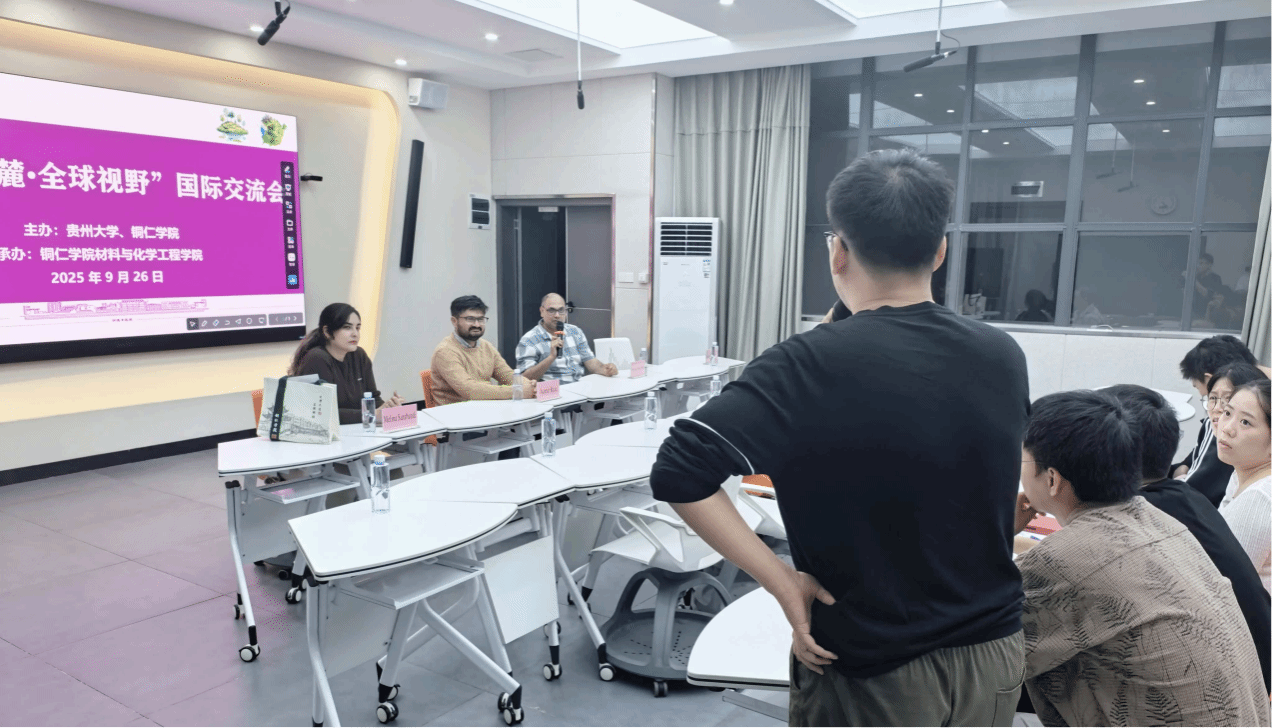 为深入贯彻落实贵州大学与beat365中国唯一官网战略合作协议,进一步推动教育国际化协同发展,2025年9月26日晚,我院在学科楼514会议室成功举办了“梵净山麓·全球视野”国际交流周专场活动。本次活动特邀贵州大学三位外籍专家来院开展学术交流,与师生进行座谈,并实地考察我院科研实验室,取得了良好的学术互动成效。