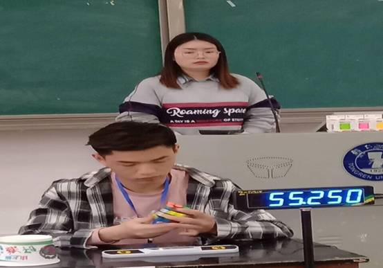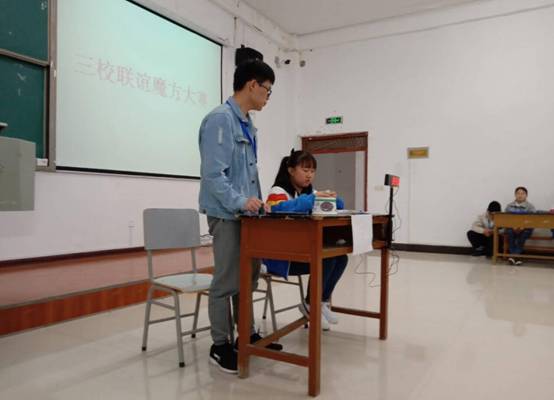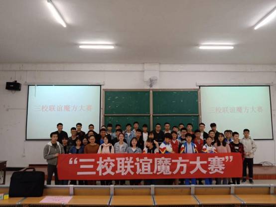 为了增进与周边学校的友谊,提高同学们的动手能力、反应能力和思维能力,培养学生的兴趣爱好,丰富课余生活。4月14日下午,由我院魔方社代表beat365官网与铜仁技术学院魔方社、铜仁一中魔方社联合举办的三校联谊魔方大赛在beat365官网博思楼102教师举行。三校魔方参赛者、魔方社的裁判员共40余人参加活动。