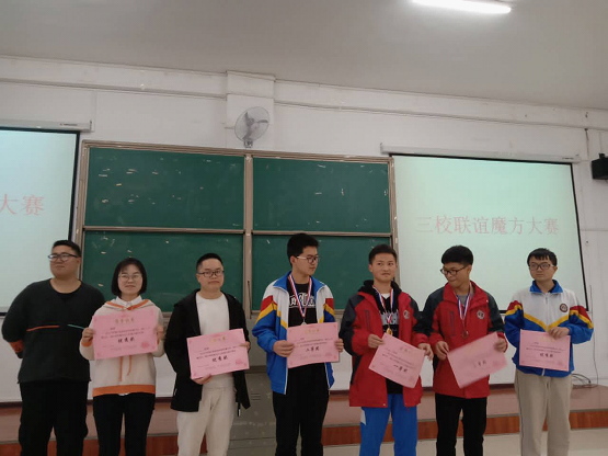 最后,评选出了二阶速拧、三阶速拧和金字塔速拧一等奖1名、二等奖1名、三等奖1名,优秀奖十二名,并为获奖者颁发证书及奖品,比赛在大家的合影留念中圆满结束。比赛结束后,各校参赛者们纷纷表示,通过此次比赛提高了空间思维能力,为魔方爱好者提供了一个很好的交流平台,增加了各校的友谊。