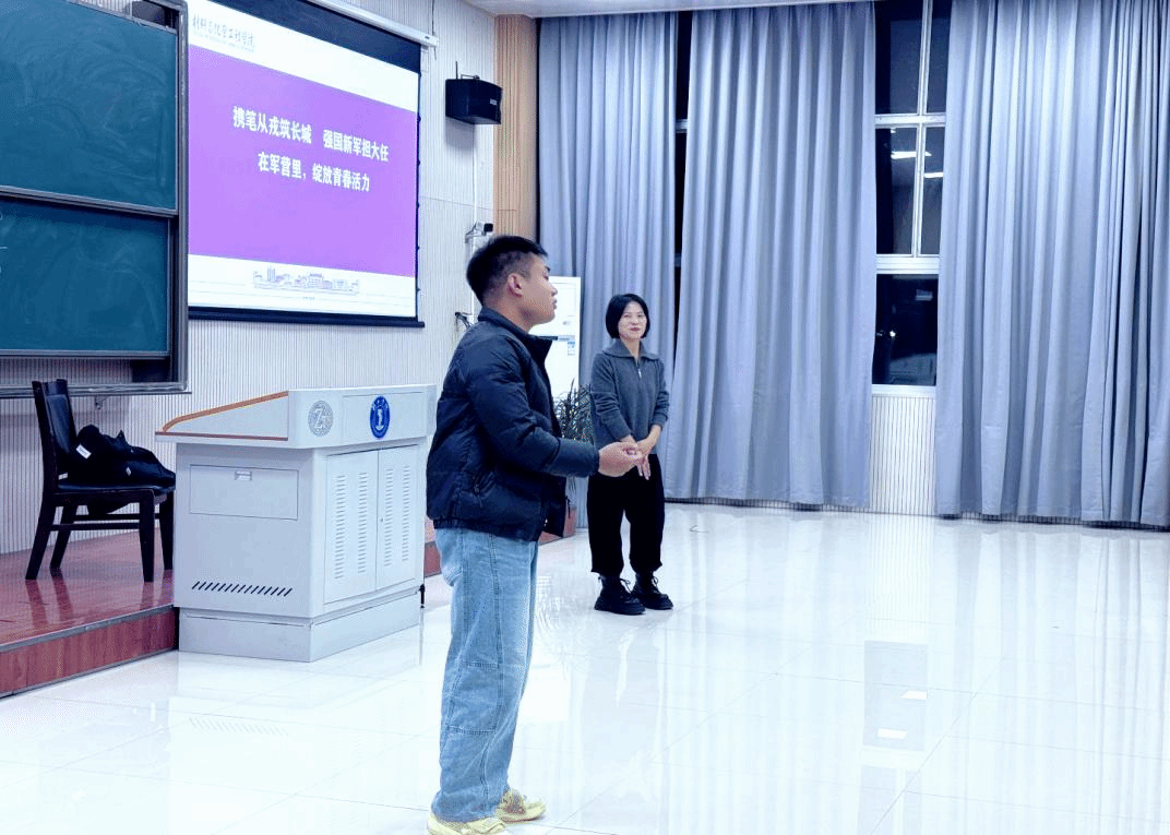 宣讲尾声,向媛、廖世佳老师发出动员号召,鼓励同学们以“强国强军有我”的担当,主动投身国防事业,在绿色军营中淬炼青春、实现价值,让个人理想与家国情怀同频共振。