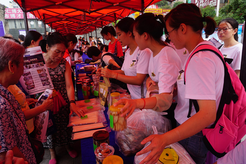 参加此次科技活动展示成果有我院老师李刚凤负责,谭沙、朱苗、黎光富、田亚容、廖伟先等主要参与的贵州省教育厅产学研项目《德江天麻加工及其保健食品开发与应用推广》、李刚凤老师负责的扶贫项目,李丽、严红波、舒丹旭、熊小艳等人参与的《神仙豆腐加工技术研究与推广应用》,谢勇、谭沙、李刚凤老师主要负责的《藤茶特色旅游食品开发与应用推广》,集中展示了食品科学与工程专业老师和学生共同参与实施的科学研究项目,下一步将积极进行成果推广。同时,还面向全市人民展示了该课题组自主研发的神仙豆腐、天麻片、天麻面条、天麻酒、天麻茶饮料、藤茶面条、藤茶酥、藤茶饼干等产品,并免费向市民品尝课题组自主研发的藤茶酥、神仙豆腐等产品。该专业同学在活动中积极介绍产品制作工艺、功效、技术要点以及食品安全相关知识等。其中展出的很多产品深受大部分市民喜爱,值得高兴的是,大部分市民都想要购买该专业自主研发的产品,纷纷表示如果市场上有销售,他们想要购买此类产品。