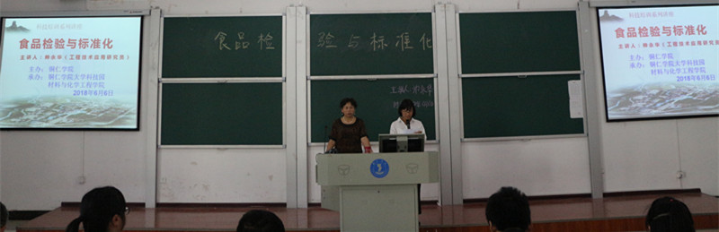 为让beat365官网学生了解食品检验与标准化是确保食品安全的重要措施和手段,6月6日下午,由beat365中国唯一官网主办,beat365中国唯一官网大学科技园、材料与化学工程学院承办的食品检验与标准化的专题知识讲座在博思楼105教室举行,铜仁市质量技术监督检测所原所长帅永华工程技术应用研究员主讲,本次讲座共200余师生聆听,由食品科学与工程专业老师李刚凤主持。