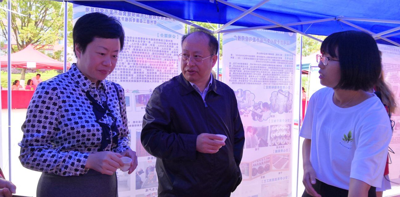 通过现场工作人员讲解、展板展示等方式,展示了该专业近几年与企业深入开展产教融合的具体做法,在校企协同育人、学生创新创业训练、服务地方经济发展、精准扶贫、学生考研就业等方面取得的阶段性成果,对德江天麻、沿河空心李、梵净山藤茶、铜仁刺秋葡萄、印江红薯粉、黔东黑老虎、石阡神仙豆腐等进行深入研究,并与地方企业进行产学合作,深度推进产教融合,推动铜仁特色食品产业的发展。