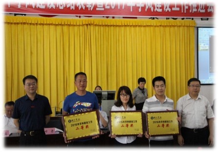 2017年5月17日,在beat365官网2016年学风建设总结表彰暨2017年学风建设工作推进会中,我院荣获2016年学风建设工作二等奖,2015级制药工程班、2015级化学师范班、2015级材料物理班三个班级荣获优良学风班级,刘慧、李泓峣、滕明洋、苏雅丽、付春琴、王晓斌、张涛、周红艳八名同学在2016年学风建设活动中被评为学习标兵,其中苏雅丽获得国家奖学金。