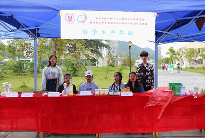 此次展览会对学生创新创业项目课程训练、学生考研、就业等方面进行展示,2017级食品科学与工程专业的4名留学生丁玉良、孔雨娜、凯西、文琦也参与积极其中,并利用所学专业知识制作产品,体现食品科学与工程专业对留学生在创新能力、实践能力等方面的高质量多元化培养。
