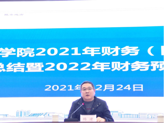 最后,杨建副校长作了重要讲话。他指出,2021年学校资金使用效率总体不高,个别部门没有结合工作性质对资金进行合理安排,学校总体工作推进不理想。各院各部门一定要高度重视资金的合理使用,高质量推动学校财务工作。