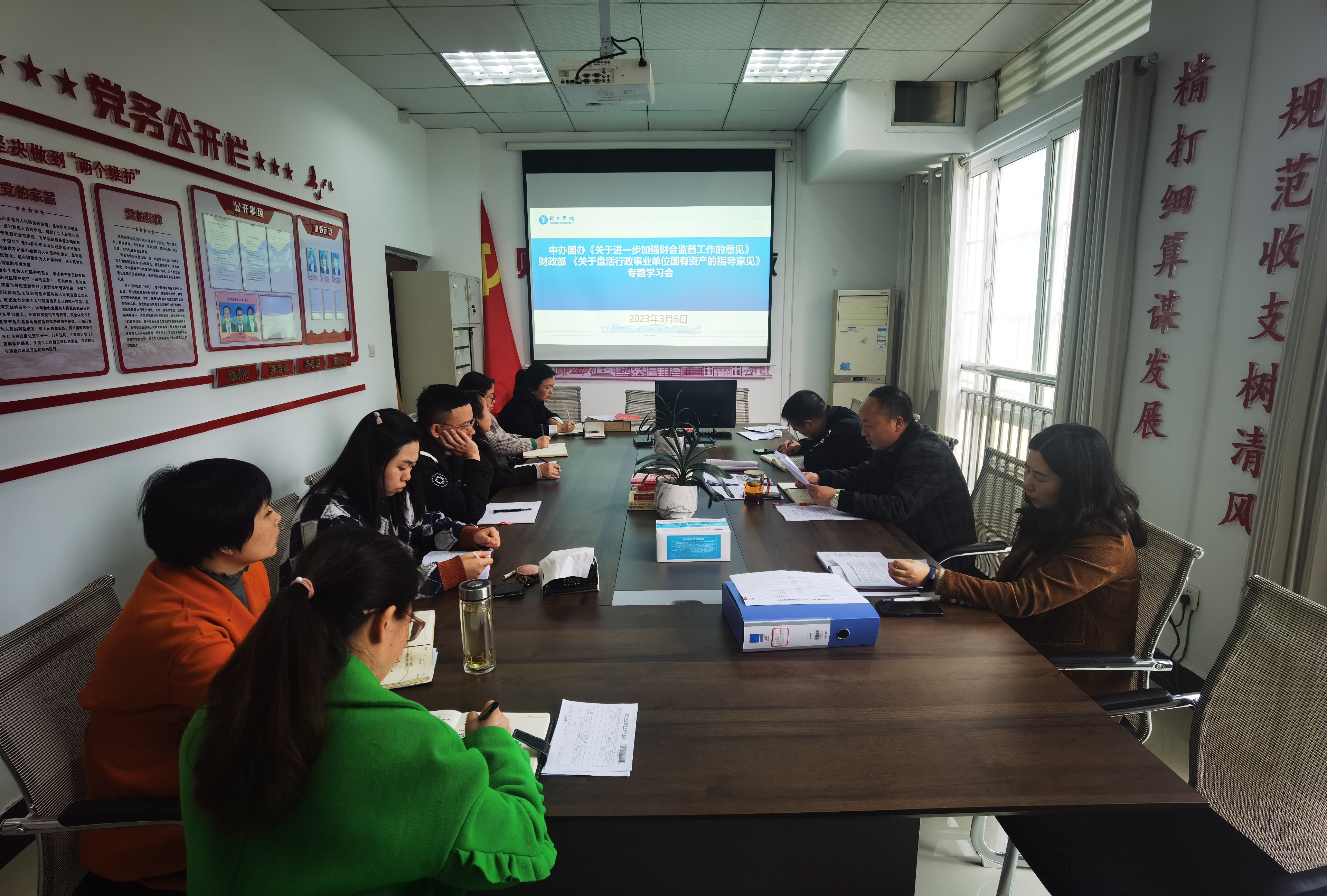 为进一步学习宣传贯彻中共中央办公厅、国务院办公厅印发的《关于进一步加强财会监督工作的意见》、财政部印发的《关于盘活行政事业单位国有资产的指导意见》文件精神,3月6日下午,财务处组织全体干部职工在8130会议室学习研讨工作的会议。