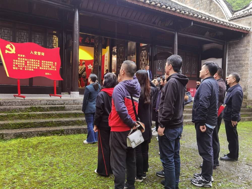 在陈列馆前,全体党员高举右拳,面对鲜红的党旗重温入党誓词,感悟初心使命,接受革命传统教育。随后,大家参观了木黄会师陈列馆,听取工作人员讲解了红二、六军团木黄会师历史及革命先辈志士的英勇事迹,以及对陈列的革命历史文物、人物照片等资料的情况介绍。