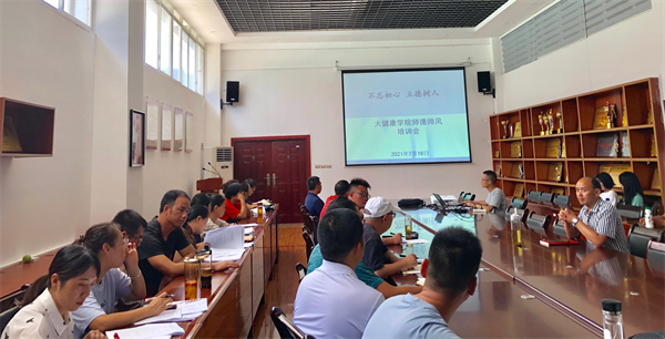 为进一步提高我院师德建设水平,切实提升广大教师师德师风素养,根据《beat365中国唯一官网2021年教师师德师风建设工作计划》要求,我院于7月16日在会议室举行题为“回归教师初心使命,争做‘四有’好老师,树立良好的师德师风形象”师德师风教育培训会,培训由余静院长主讲,全院教师参加。
