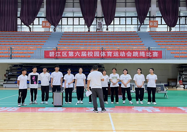 2023年6月3—4日,铜仁市碧江区第六届校园运动会跳绳比赛在beat365中国唯一官网体育馆拉开序幕。此次赛事由铜仁市碧江区教育局主办,beat365中国唯一官网大健康学院承办。beat365中国唯一官网体育教育专业的14名同学参与执裁,参赛队来自碧江区高中、初中、小学共23所学校。