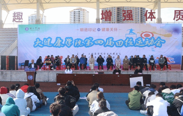 2023年11月17日,我院举办“明德印记·健康关怀”系列活动暨第四届田径运动会,开幕式之前,举行了“明德印记·健康关怀”思想政治教育大会,全院师生参加。院党委书记、院长余静围绕新时代大学生思想政治教育的理论和实践问题进行了深入的分析和宣讲,旨在加强和改进大健康学院师生思想政治教育工作,推进人才培养及各项工作高质量发展。