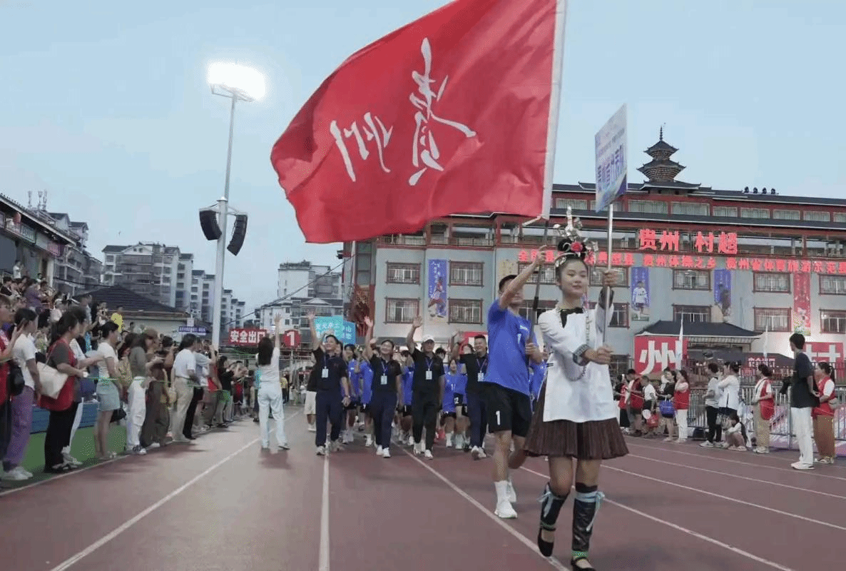 本次比赛由国家体育总局、全国体育总会主办,比赛为期七天,来自重庆、四川、西藏、云南、贵州共400余名运动员齐聚榕江,在这个充满活力的"村超"球场切磋球技,尽情感受足球的魅力和快乐。开幕式现场气氛热烈,彩旗飘扬,观众们的欢呼声此起彼伏,队员们身着整齐的队服,迈着坚定的步伐,脸上洋溢着对足球的热爱和对比赛的期待,他们将带着顽强拼搏的精神,默契的团队配合,全力以赴,为荣誉而战,为梦想拼搏,