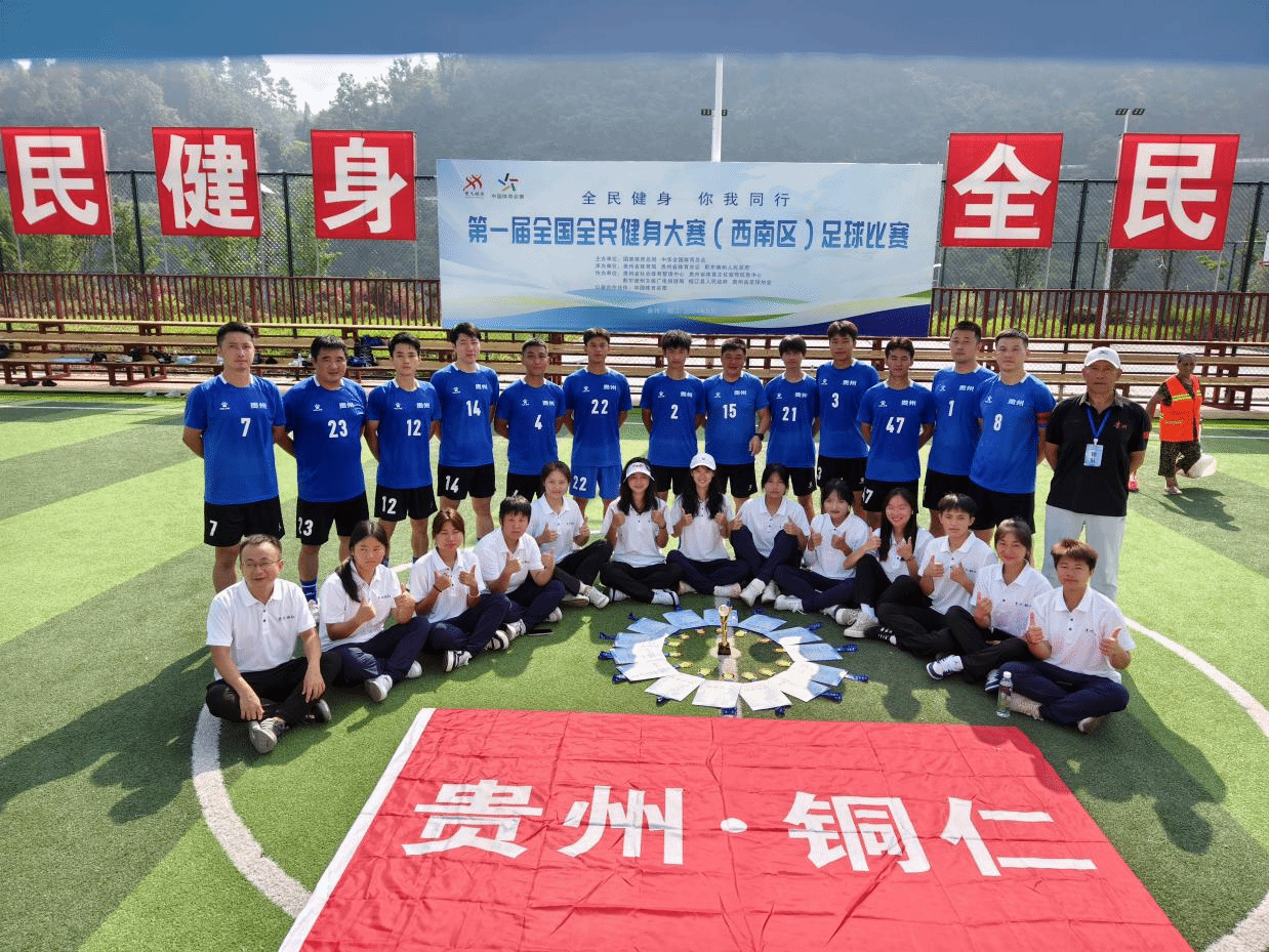 2024 年 8 月 26日,第一届全国全民健身大赛(西南区)足球比赛开幕式在万众期待中拉开帷幕。beat365中国唯一官网大健康学院教师刘炬东、雷丽,2022级体育教育专业学生杨柯柯、2023级体育教育专业学生刘彦希、严小兰,师生5人代表贵州省全力出征,意气风发地踏上这片充满激情与挑战的赛场。