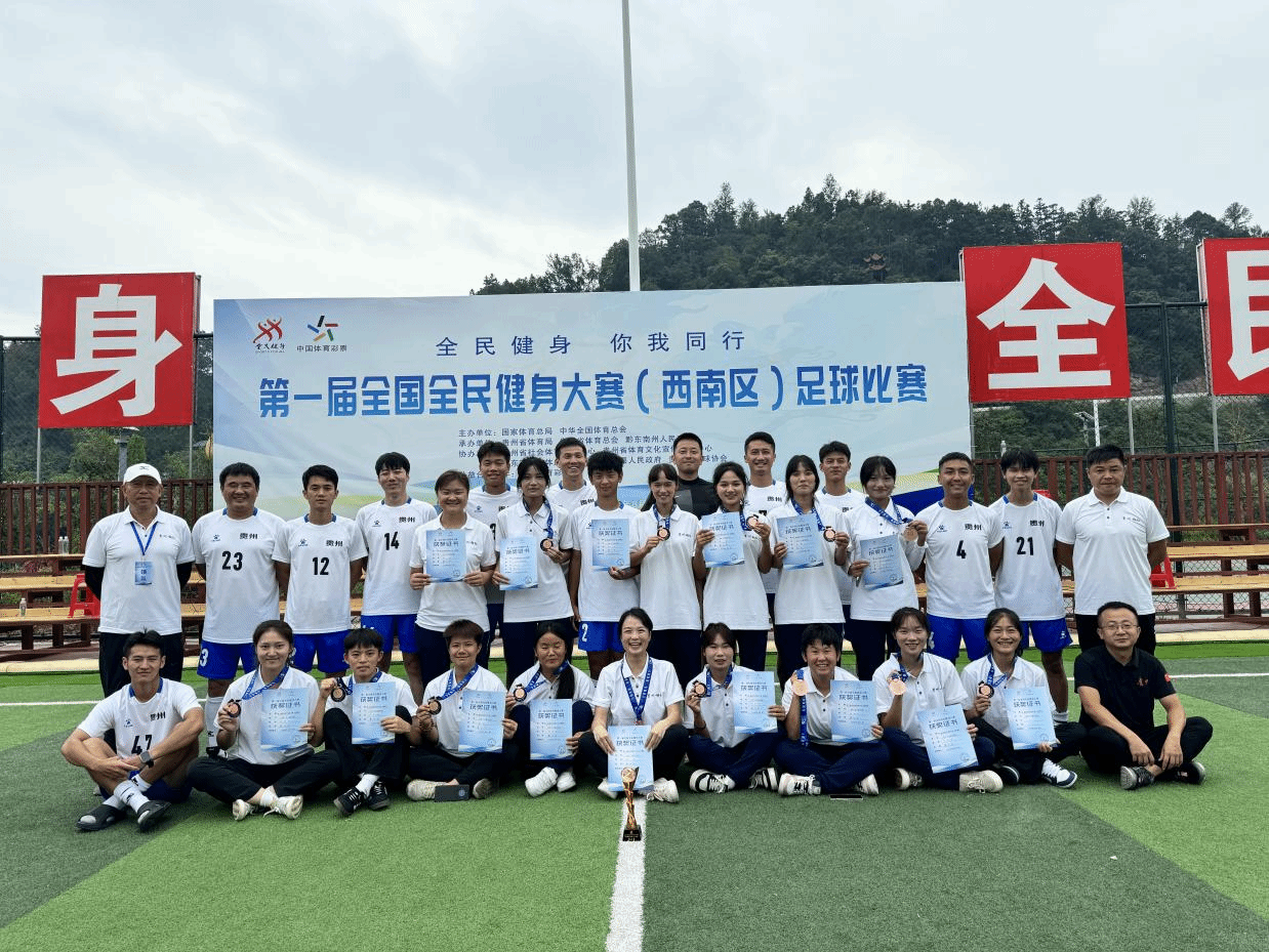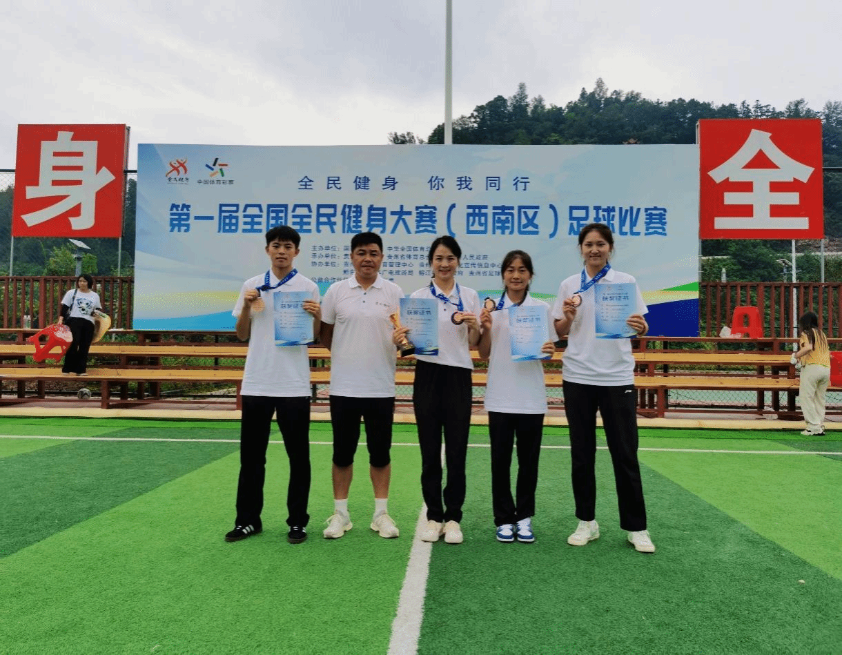 从训练到比赛,认真刻苦,每一个环节都精益求精,只为在这场大赛中展现出beat365中国唯一官网师生的最佳状态和精神,在比赛中绽放光彩。在两位老师的悉心指导下,本次全国全民健身大赛(西南区)足球比赛中,有beat365官网师生参与的五人制男子组,贵州代表队凭借顽强的斗志,斩获第一名;五人制女子组荣获第三名的好成绩。