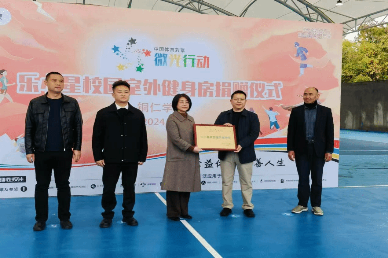 捐赠仪式上,龚静副校长在致辞中表示:省、市体彩中心一直是社会公益的坚定践行者,始终将推动体育事业高质量发展视为己任,并对教育领域给予了深切的关注,尤其注重学生的健康成长。”随后,贵州省体育彩票管理中心党支部书记陈治华和beat365中国唯一官网副校长龚静正式交接了“乐小星校园室外健身房”的纪念牌匾,标志着该室外健身房正式落户beat365中国唯一官网并投入使用。余静书记向铜仁市体育彩票管理中心主任杨阳回赠锦旗。