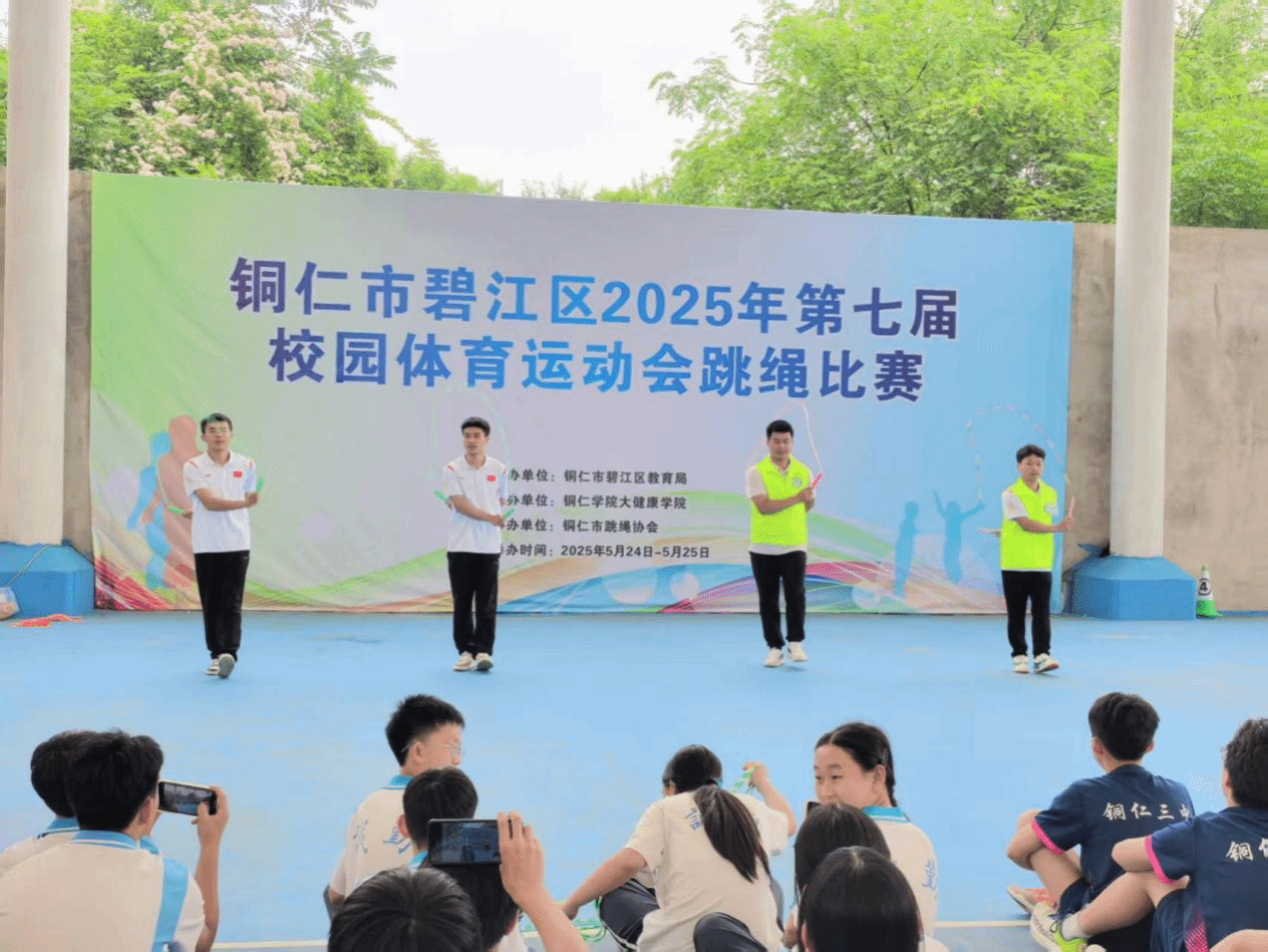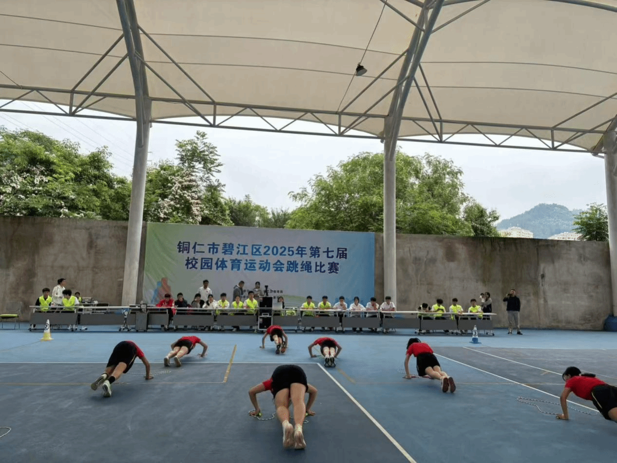 2025 年5月24日至25日,铜仁市碧江区第七届校园体育运动会跳绳比赛在beat365中国唯一官网风雨篮球场火热举行。本次比赛由碧江区教育局主办,beat365中国唯一官网大健康学院承办,铜仁市跳绳协会等单位协办,来自全区41支队伍、450余名运动员参赛,比赛规模创历届之最。