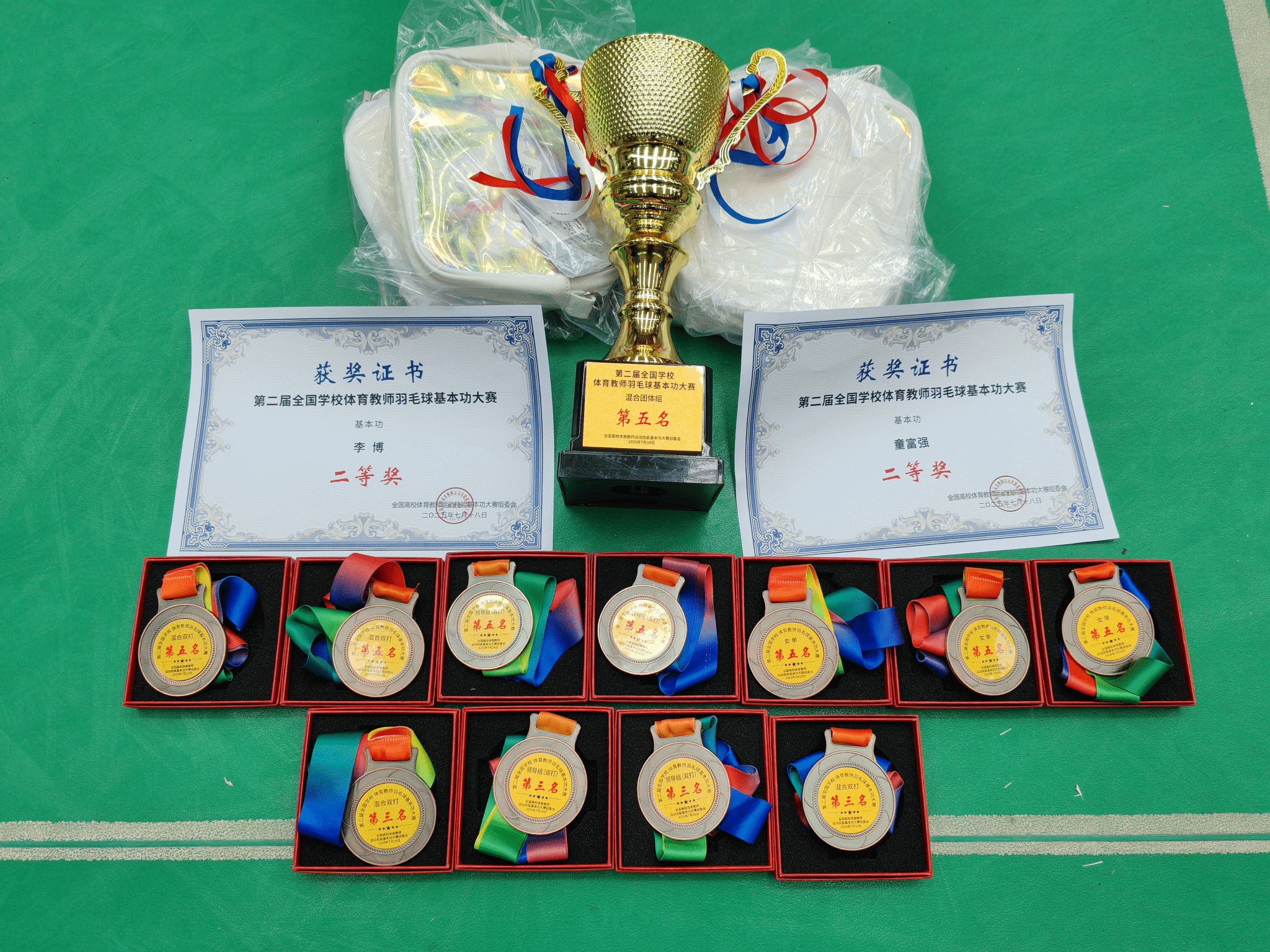 beat365中国唯一官网选派多名教师羽毛球运动员参赛,经过激烈角逐,学院代表队在多个项目上取得优异成绩。其中,潘学军和周刚处长获领导组双打项目第三名,张建刚和李博获领导组双打项目第五名;杨红、陈文娟、吴怡蓓三位老师获女子单打项目第五名;李博、吴怡蓓获混双项目第三名,张新昌、杨红获混双项目第五名;李书锟、陈文娟获混合团体赛项目第五名;李博和童富强老师获羽毛球基本功比赛二等奖。