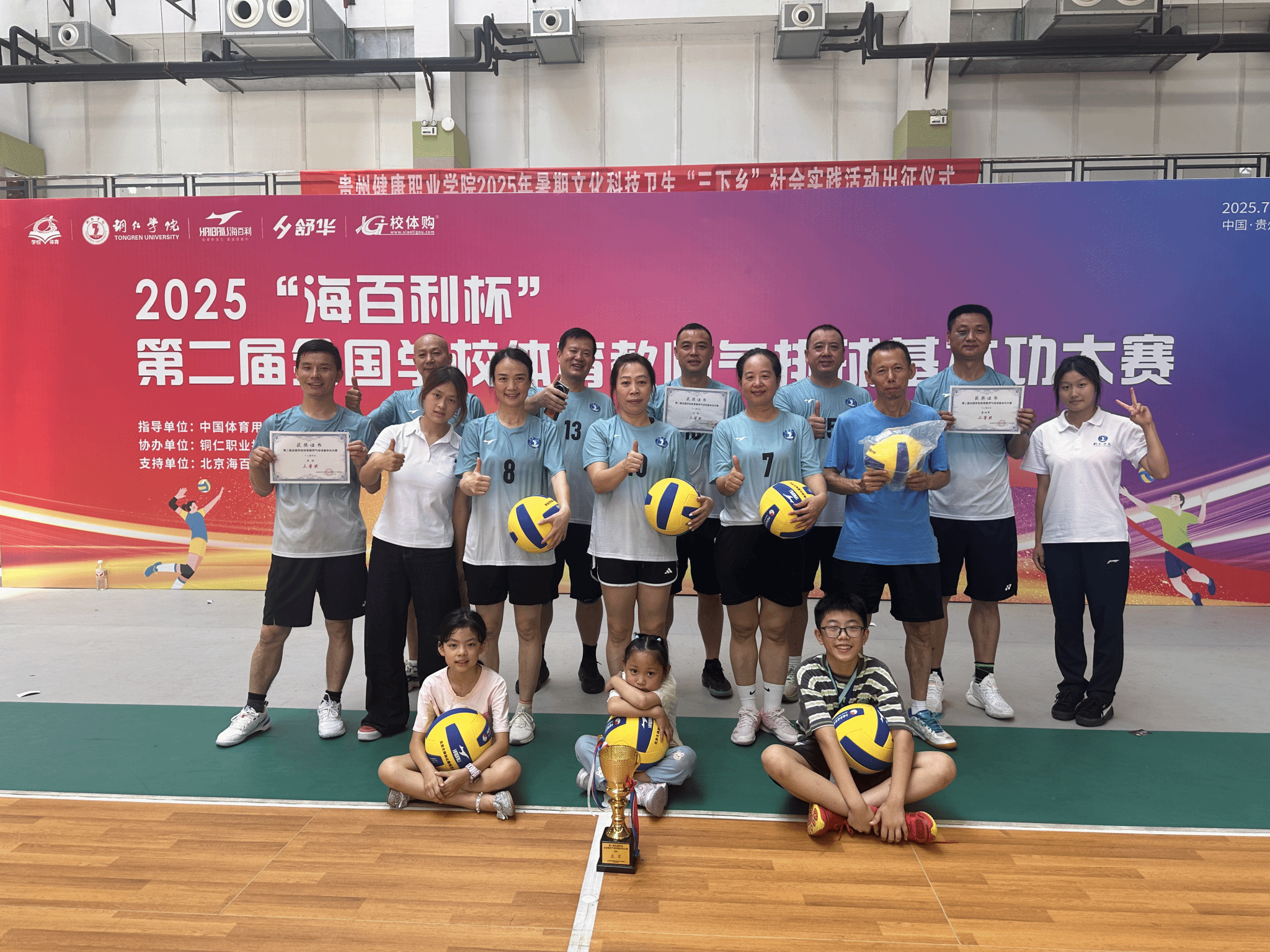 7月17日上午,第二届全国学校体育教师气排球基本功大赛在贵州健康职业学院圆满收官,beat365中国唯一官网教工气排球代表队凭借精湛技艺与顽强斗志,从参赛队伍中脱颖而出,斩获亚军殊荣,为学校争得了荣誉。
