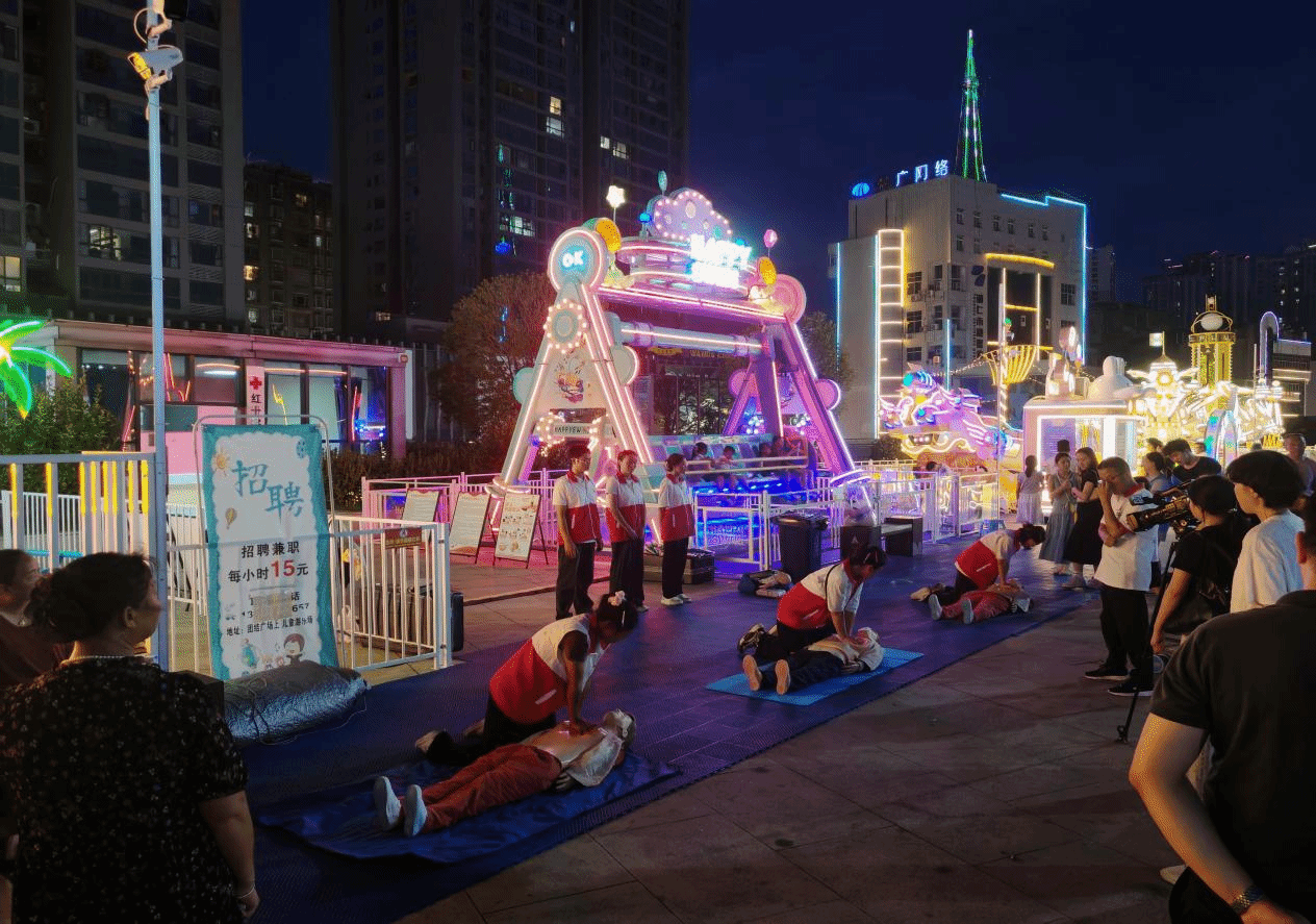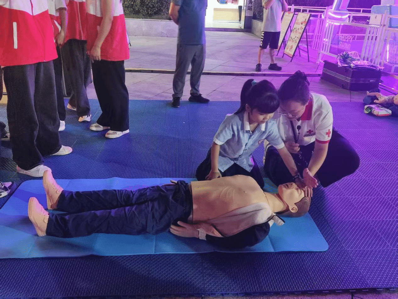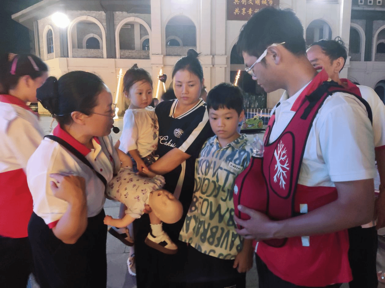 8月29日晚,beat365中国唯一官网大健康学院田芬老师带领beat365中国唯一官网应急救护社6名2023级护理专业学生,应邀参加由铜仁市红十字会联合碧江区红十字会、铜仁职业技术大学及三江文化旅游发展有限公司在中南门志愿服务站举办的“志愿同仁,生命教育”红十字志愿服务活动。活动聚焦应急救护技能普及,通过专题培训、现场演示、互动实践等形式,系统讲解心肺复苏(CPR)、自动体外除颤仪(AED)使用及海姆立克急救法,吸引了众多市民参与。