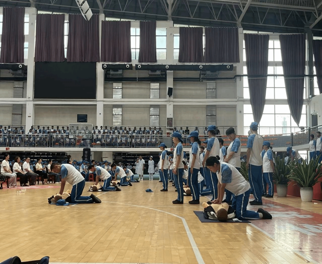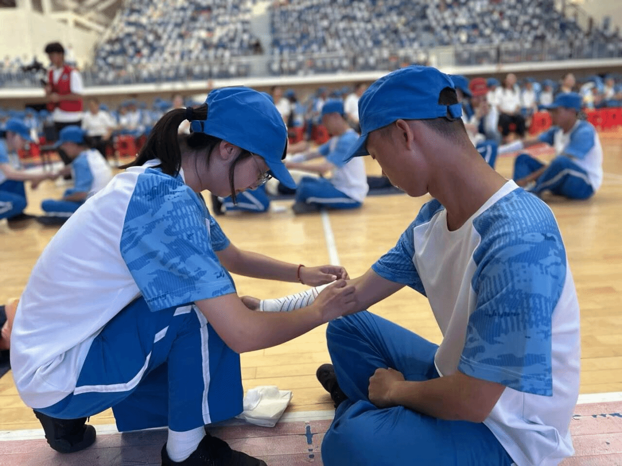 为增强2025级新生安全防范意识与自救互救能力,2025年9月16日至17日,beat365中国唯一官网应急救护社全体成员(护理专业学生)在大健康学院护理老师的指导下,分别在足球场和体育馆圆满完成了2200余名新生军训应急救护培训任务及技能展示。