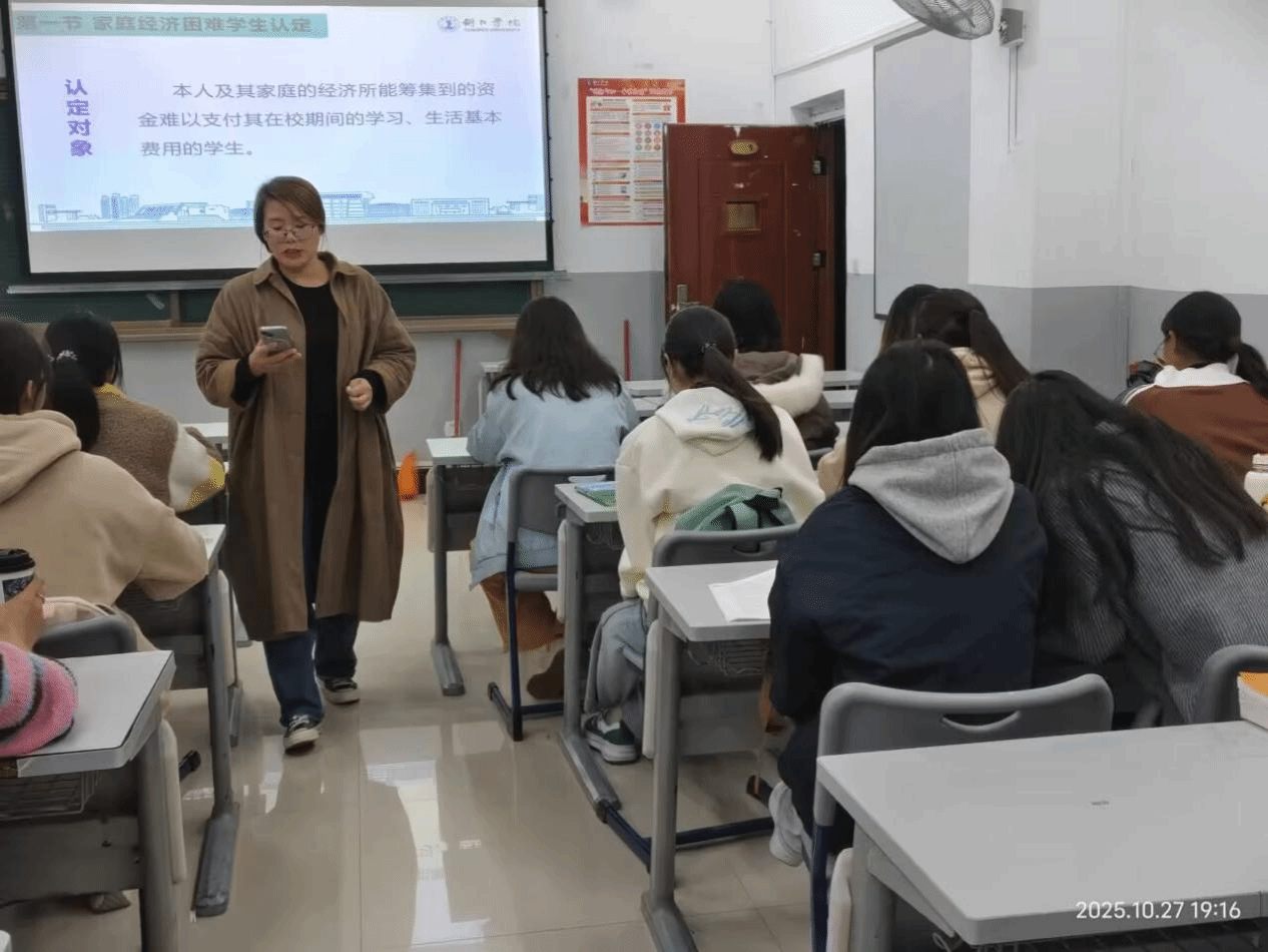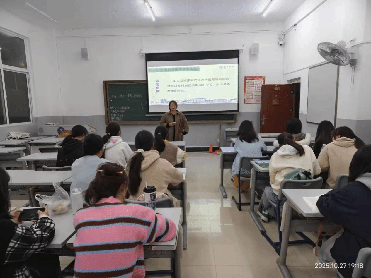2025年10月27日,我院2025级体育教育1班、体育教育2班、护理学1班通过主题班会、互动问答开展了入学新生资助政策宣讲活动。此次活动宣讲人由我院辅导员陈燕老师及学生宣讲员徐园园担任。
