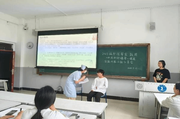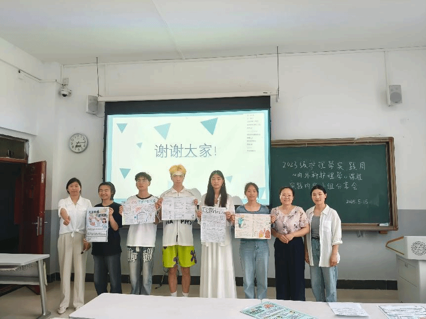 2025年5月15日14:00,大健康学院2023级护理学实践周《内、外科护理学》小组分享会在音乐楼202教室顺利举办。本次分享会汇聚了护理系全体教师以及23、24级护理学同学。分享会由23级护理专业的文堃宁同学担任主持。
