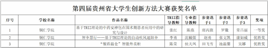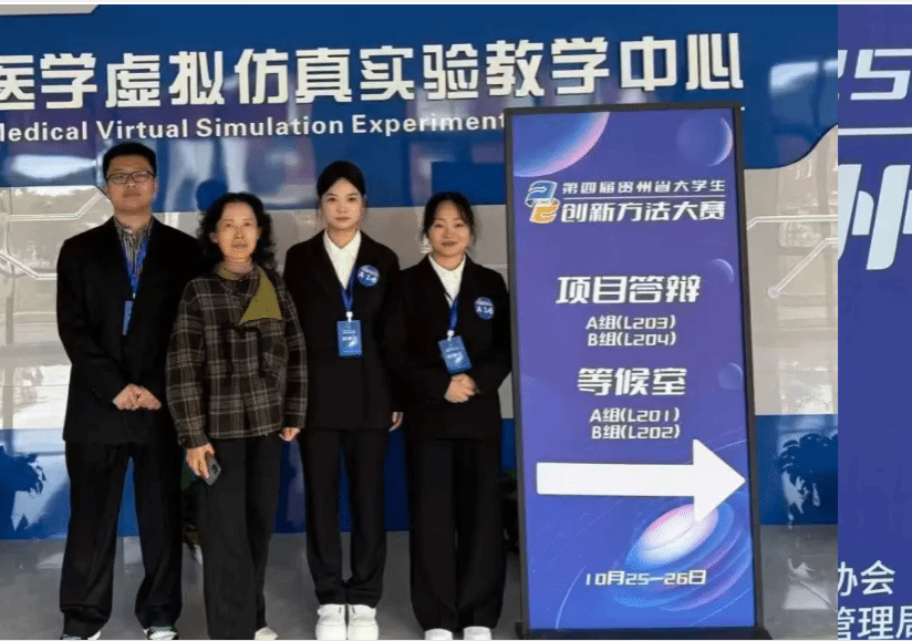10月26日,由贵州省科学技术协会、贵州省教育厅、贵州省市场监督管理局、共青团贵州省委、贵州省总工会共同主办的2025年中国创新方法大赛贵州赛区决赛、第四届贵州省大学生创新方法大赛决赛在贵州医科大学(云漫湖校区)落下帷幕。由大健康学院张红、陈燕两位老师指导的学生队伍经过层层选拔,顺利挺进200强并成功参加决赛。决赛分理论测试规则(测试成绩按10%比例计入总成绩)和项目展示规则(按90%比例计入参赛队总成绩)两个阶段进行。三名选手(席丙旗、罗微、常吕丽)经过团结协作、善思勇为、多点迸发,最终获得全省一等奖佳绩。