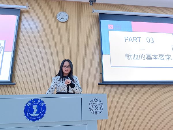 在本次讲座中,段绍群科长从无偿献血的意义、无偿献血的好处、献血基本要求、献血注意事项四个方面进行宣讲。最后一个环节为无偿献血快问快答,在问答环节中,段科长一一回应同学们的提问,有效的解决了同学们对无偿献血的疑虑。讲座最后,段科长给大家展示了无偿献血奉献奖获得者的风采,激励同学们发扬无私奉献的志愿服务精神,积极参加献血,展现新时代青年学生的精神面貌,并鼓励大家积极参与到校园献血活动中来。
