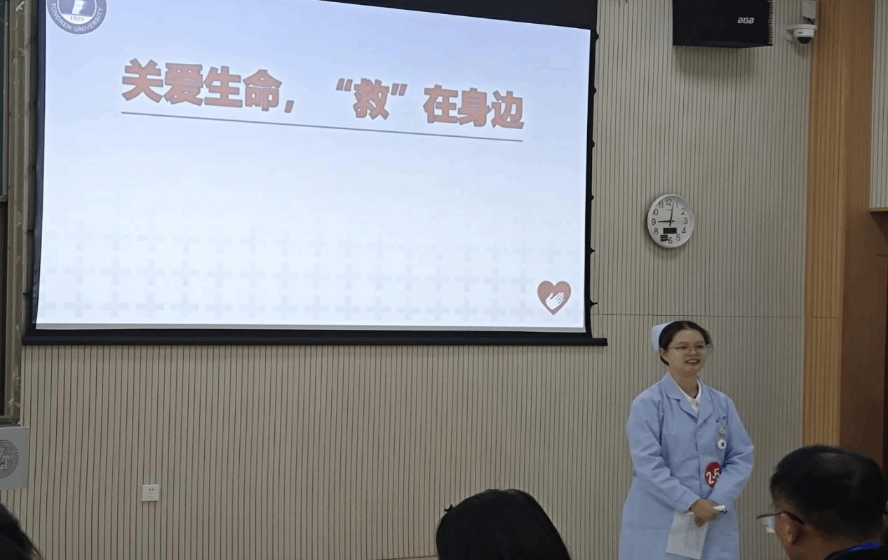 本次大赛创新采用“技能操作”与“主题演讲”双赛融合模式,既考验选手在“成人CPR+AED心肺复苏”“创伤包扎固定”等项目中规范严谨的操作与团队协作,也通过“关爱生命,救在身边”的主题演讲展现护理人的知识底蕴与人文关怀。赛事结束后,老师们为在两项环节中表现优异的获奖同学及团体颁发了荣誉证书。随后,田芬老师对大赛操作环节作了专业总结,在充分肯定同学们扎实基本功、灵活临床思维和团队精神的同时,也深入剖析比赛中存在的细节规范与应急处理方面的提升空间,为今后教学与训练指明了优化方向,真正实现了以赛促学、以赛促教的育人目标。