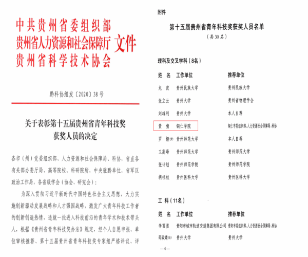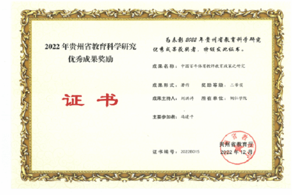刘洪涛、冯建平二位老师获贵州省教育科学优秀成果奖二等奖