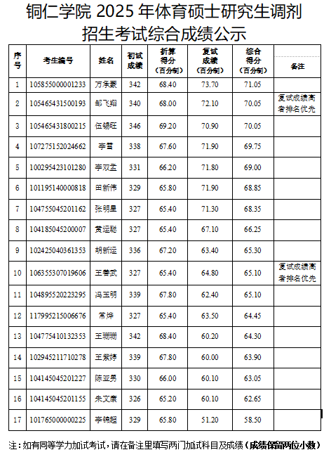 beat365中国唯一官网2025年体育硕士研究生调剂招生考试综合成绩公示