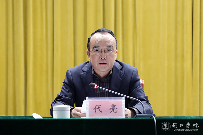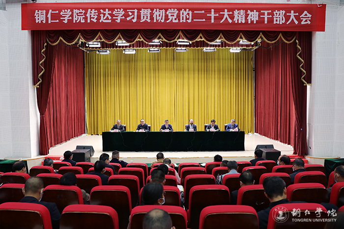 校领导侯长林、代亮、吴先佳、石维、杨建,党委委员梁正海、叶丹、刘德平出席会议。代亮传达了党的二十大精神、二十届一中全会精神、习近平总书记在参加广西代表团讨论时的重要讲话精神、习近平总书记在党的二十大闭幕会上的重要讲话精神,同时,传达了王沪宁同志在参加贵州省代表团讨论时的讲话精神,以及贵州省委、铜仁市委学习宣传贯彻党的二十大精神领导干部大会精神。
