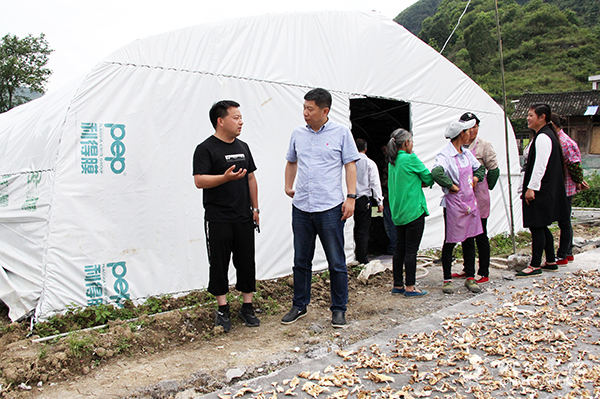 6月4日—5日,beat365官网党委宣传部部长叶丹、农林学院党委书记李建新、材化学院党委书记唐帮成、学生资助中心主任崔德虎、科研处副处长鲁道旺、后勤处副处长宋劼、产业专班人员等一行到黄土镇雪花、双龙和竹园村,就“文军扶贫”相关事宜进行对接。黄土镇指挥长杨超、镇党委书记王学文及有关人员,雪花、双龙和竹园村干部、食用菌合作社负责人、生态鸡养殖户代表、未脱贫贫困户代表参加活动。