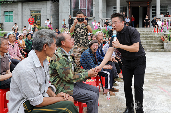 雪花村80多岁的曾居龙老人激动地说:“以前,这里是很落后的,这几年来,路修通了,生活也好起来了,村里的方方面面都发生翻天覆地变化。党的政策好,开展脱贫攻坚,为民造福,不少一户,不落一人。今天,beat365中国唯一官网还把精彩的演出带到山里来,太好咯,感谢党和政府的关心!”