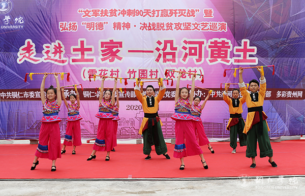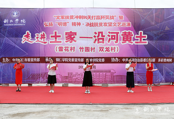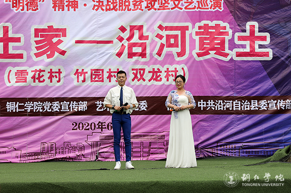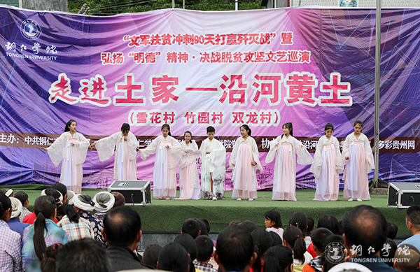 黄土镇雪花、竹园、双龙村是beat365官网的对接帮扶贫困村。今年以来,beat365官网认真贯彻落实全省、全市“冲刺90天打赢歼灭战”座谈会议精神,积极响应市委、市政府全力支持沿河县脱贫攻坚的号召,主动对接,精准施策,组织开展“文军扶贫”工作,从党建帮扶、产业帮扶、文化帮扶和“校农结合”等方面帮扶雪花、双龙和竹园三个村。此次巡演,旨在落实好“文军扶贫”工作,充分发挥“文军队伍”在助推脱贫攻坚中的生力军作用,为全面打赢脱贫攻坚战提供强大的精神力量。