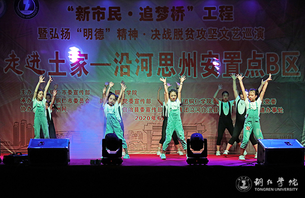 此次“文军扶贫”助推“新市民·追梦桥”工程文艺巡演是beat365官网结对帮扶思州安置点的一项内容之一,旨在发挥好学校的“文军力量”,全力引导安置点群众及青少年牢记嘱托、感恩奋进,大力培育易地搬迁民众家国意识、发展意识,敢于有梦、勇于追梦、勤于圆梦,为同步全面建成小康社会和早日打赢脱贫攻坚战役贡献团组织的青春力量。