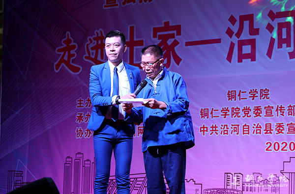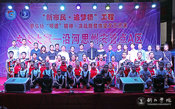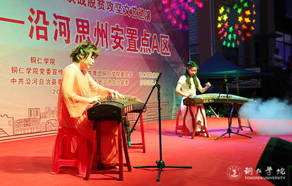 “在全面建成小康社会决胜之年,我们学校高度重视文军扶贫工作,积极响应党的号召,积极动员师生参与文军扶贫,凝聚文军力量,施展文艺才能,先后走进了江口县梵瑞社区、玉屏县康华社区、松桃县团山社区以及沿河县黄土镇、泉坝镇、思州安置点开展了8场文艺巡演,为决胜脱贫攻坚、实施乡村振兴注入了学校的力量。”此次“文军扶贫”文艺巡演小分队的领队、艺术学院党委副书记麻晔斐如是说。