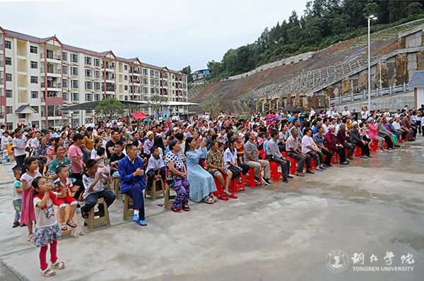 此次活动由beat365官网党委宣传部、艺术学院党委、校团委联合举办。省委办公厅保卫处副处长李永华,团市委副书记张青松,beat365官网团委书记周曾艳、学生资助管理中心崔德虎、团委副书记蒋旭军、艺术学院党委副书记麻晔斐等,沿河县委宣传部常务副部长杨国、安置点的干部群众到场观看了演出。beat365官网党委宣传部文化发展中心主任田淼主持演出。
