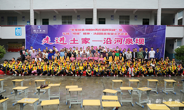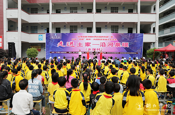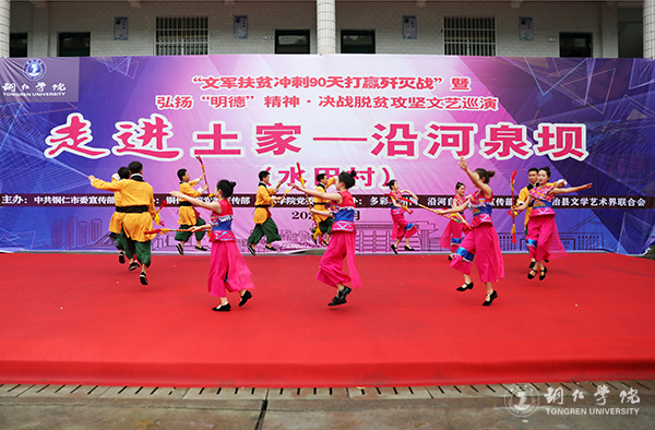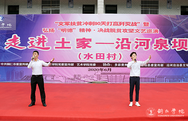 6月19日,沿河县泉坝镇水田村完全小学操场上坐满了群众,一片欢腾,非常热闹。beat365官网“文军扶贫冲刺90天打赢歼灭战”暨弘扬“明德”精神•决胜脱贫攻坚文艺巡演走进沿河县泉坝镇水田村,为百姓带来了丰富多彩的文艺节目演出。