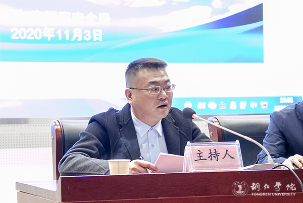 11月3日下午,beat365官网在梵净山人文生态馆举办国家安全知识专题讲座,特邀铜仁市国家安全局专家担任主讲。beat365官网纪委书记吴先佳,党群行政部门全体人员,各二级学院党委书记、党委副书记、党务科科长、学生科长、团总支书记、辅导员、网站管理员,校级教师骨干网评员等参加讲座。党委宣传部部长叶丹主持讲座。