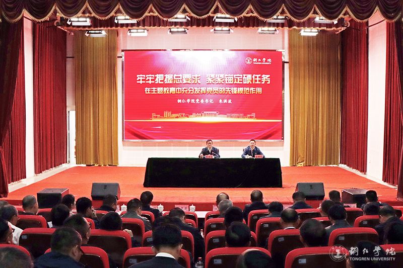 朱洪波以“牢牢把握总要求 紧紧锚定硬任务 在主题教育中充分发挥先锋模范作用”为题,围绕“切实提高政治站位,深刻把握习近平新时代中国特色社会主义思想的生成逻辑、科学内涵和实践遵循”“坚持深学笃用,深入学习贯彻习近平总书记关于教育的重要论述和视察贵州重要讲话精神以及对贵州对铜仁工作重要指示批示精神”“坚持贯通历史、现实和未来,客观分析beat365中国唯一官网发展新阶段新特征,奋力建设高水平教学研究服务型大学”“充分发挥先锋模范作用,为建设高水平教学研究服务型大学再立新功”四个方面进行阐述。